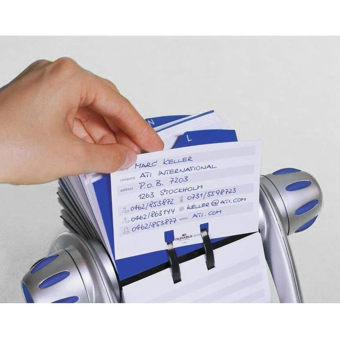 • Mit Drehknopf, 25-teiligem Register A-Z, 500 beidseitig bedruckten Karten