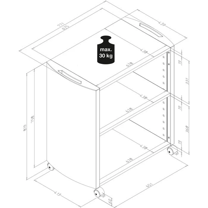 • Mit 3 Fachböden, bis 30 kg belastbar