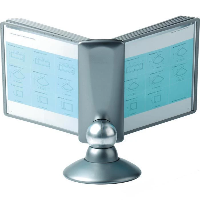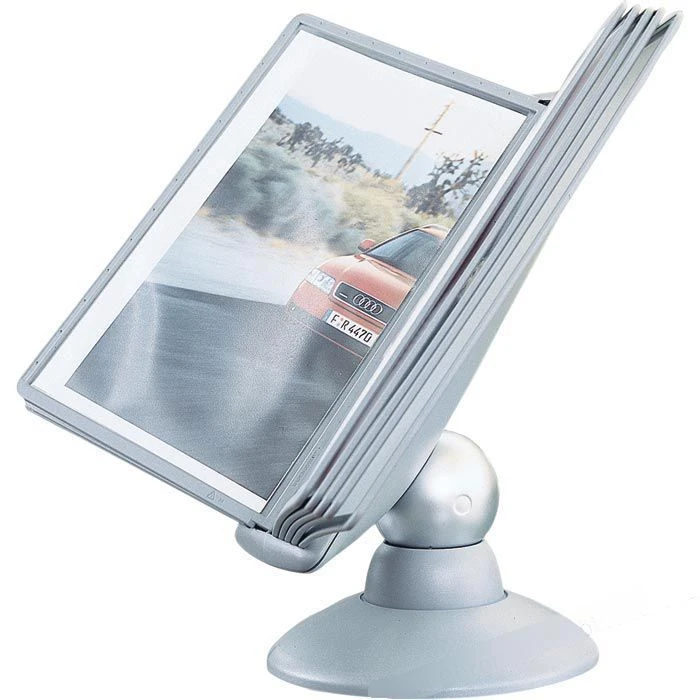 Eine galvanisierte Kugel verbindet Tafelträger und standfesten Fuß und ermöglicht eine 360°-Drehung. Lesewinkel von 25° bis 70 ° verstellbar.