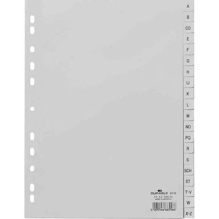• Mit vorgedrucktem Alphabet auf den Taben und Universallochung