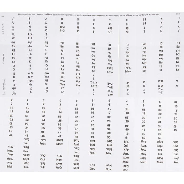 Lieferung: inkl. auswechselbaren Beschriftungsschildern A-Z, 0-31 und Jan.-Dez.