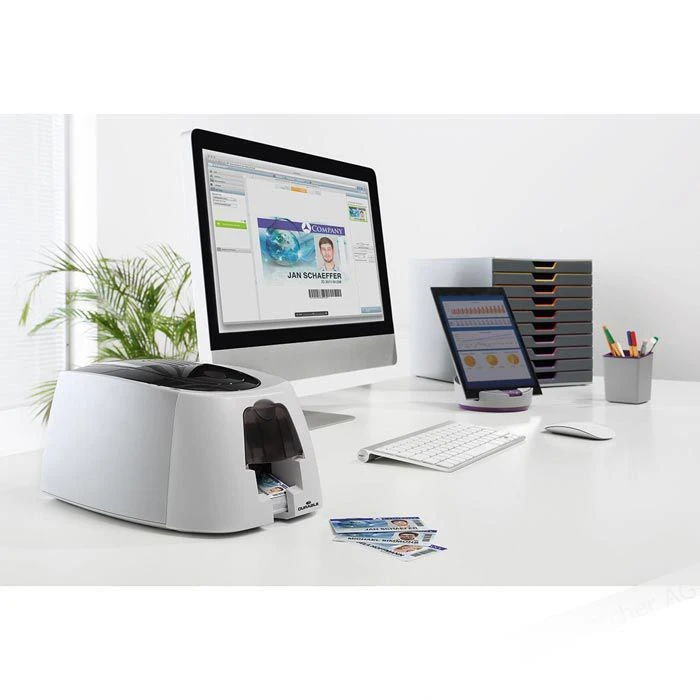Lieferung: inkl. YMCKO-Farbband für 100 mehrfarbige Drucke, 100 PVC-Karten 0,76mm, Netzteil, Netzkabel, USB-Kabel