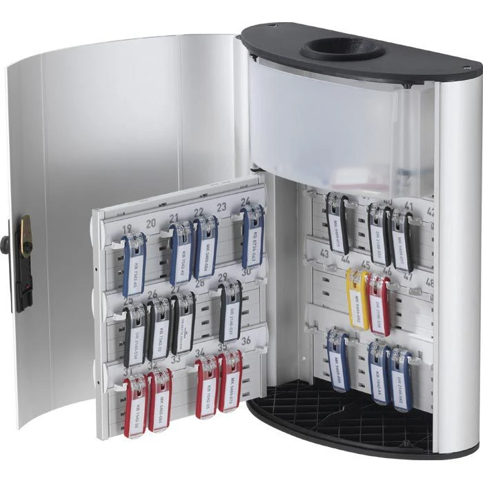 sonstiges: mit Hakenleisten im Rastersystem verstellbar, Nummerierung und Schlüsselregisterindex, ideal für Key Clip Anhänger, aber auch für normale Schlüsselanhänger geeignet, Gehäuse aus bruchfestem Polyamid, 3-stelliges Schloss