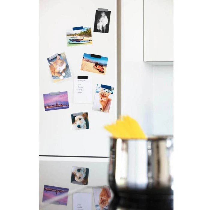 sonstiges: Dokumente schnell und einfach fixieren, selbstklebenden Magnetclip anbringen, aufklappen, Zettel einlegen und beliebig oft wechseln, klebt auf glatten Oberflächen wie z. B. an Schränken, Glastüren, Whiteboards, Schaukästen etc.
