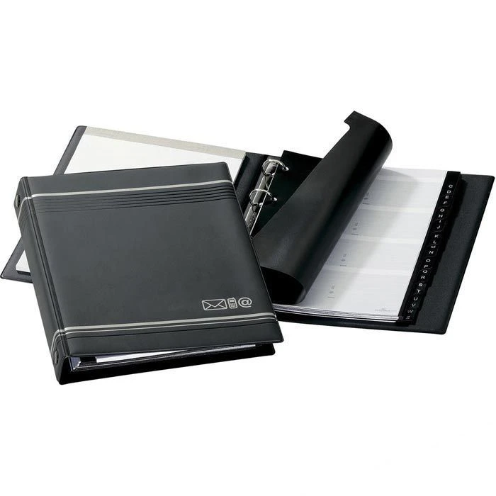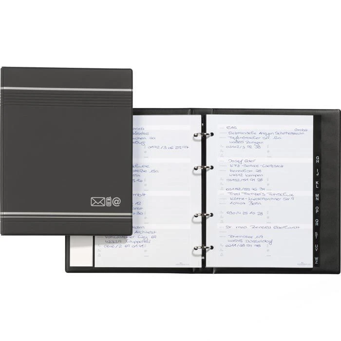 sonstiges: 25 Karten für 200 Einträge, 4-Ringmechanik, mit Notizblock (50 Blatt blanko) im Vorderdeckel