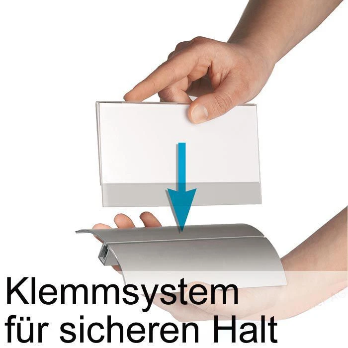 sonstiges: mit Aluminiumfuß und einzigartigem Klemmsystem für sicheren Halt und leichtes Auswechseln der Einsteckschilder, Einsteckschilder für einseitige Beschriftung